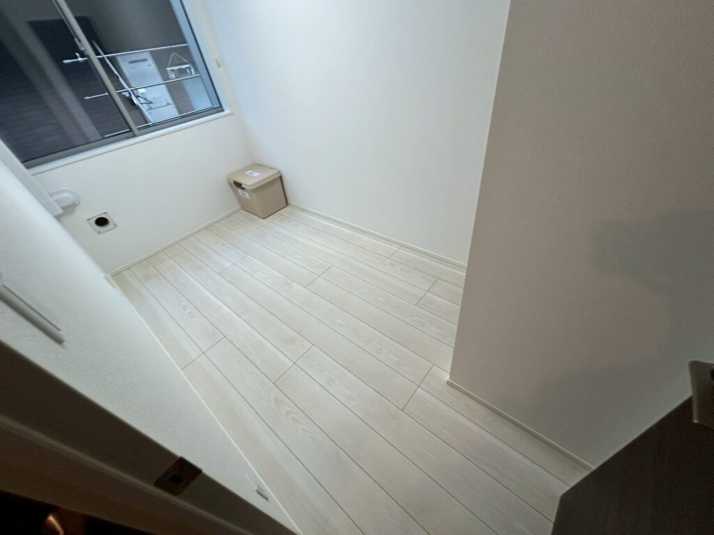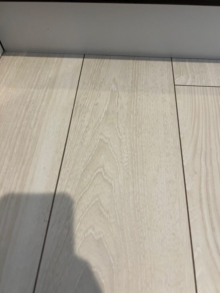 光が床に反射し、真新しいトイレの床が静かに輝きます。